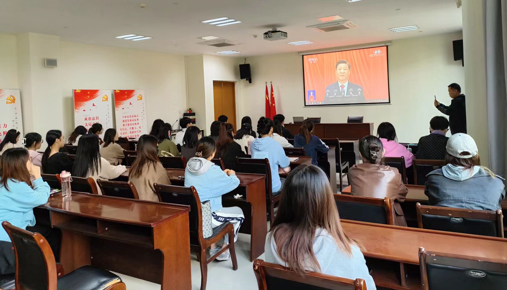 熊猫体育 全体师生党员齐聚一堂,集中收看大会盛况。大家聚精会神地聆听习近平总书记的报告,认真做笔记,深切感受大会的庄重热烈,深刻领会报告的丰富内涵,深刻体悟大会凝聚起的磅礴力量。